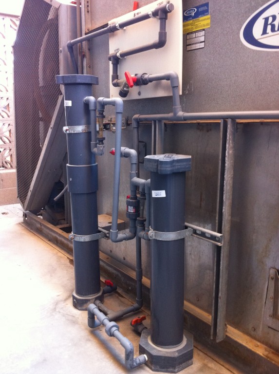 When analyzing different water treatment companies and various treatment systems to protect your cooling towers and the machinery attached to them there are many vital aspects to consider that will deal with your equipments health, longevity and cost efficiency. However, nothing is more important to protecting your expensive machinery connected to your tower/s and the actual tower/s than your towers water chemistry. There is a very fine balance in your cooling towers water chemistry that needs to be held and it stands alone at a very precise point between corrosive water and water that enhances scale growth. With your municipal source changing in chemistry on a regular basis whoever is servicing your towers needs to adjust treatment with these changes in order to maintain that perfect balance. What happens if you do not maintain this vital balance? Well most experience scaling to their towers and everything expensive that is attached to them, costing your company lots of money and allocation of important human resources to clean your machinery on a regular basis that could all be avoided with the right water treatment company at a very low cost in comparison. It is also a common misconception in our industry to see no scaling to your equipment and think that your water treatment company is doing a great job. In many cases they are not doing a good job and injecting way too much liquid chemical or chemical into your evaporative cooling system making your cooling towers water more corrosive to the expensive alloys in your towers and everything connected to them.